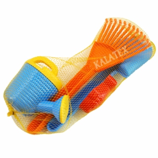 Sandspielzeug Set 4 teilig, Gießkanne 12 x 12 cm, Förmchen 9 cm, Rechen und Schaufel ca. 30 cm, aus Kunststoff, im Netz, mit CE Zeichen