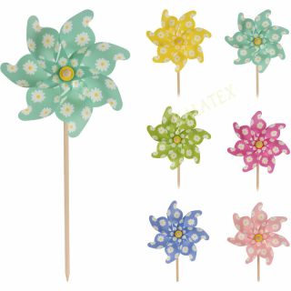 Windmühle 75 cm hoch, mit Holzstiel, Windrad in 6 Farben sortiert, Durchmesser Windrad ca. 30 cm, Windrad aus Polypropylen